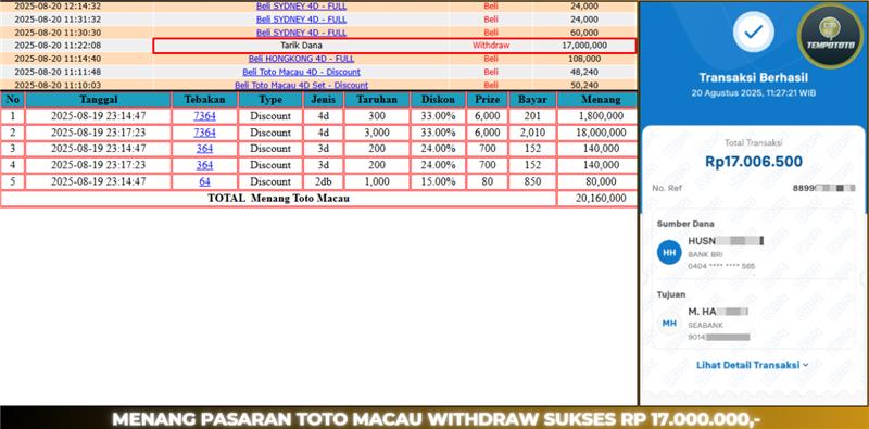 JACKPOT ASLI TEMPOTOTO MENANG : TOTO MACAU RP. 17.000.000