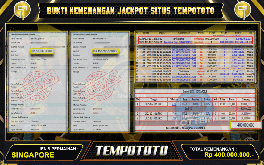 BUKTI MEMBER TEMBUS TOGEL PASARAN SINGAPORE DI SITUS TEMPOTOTO